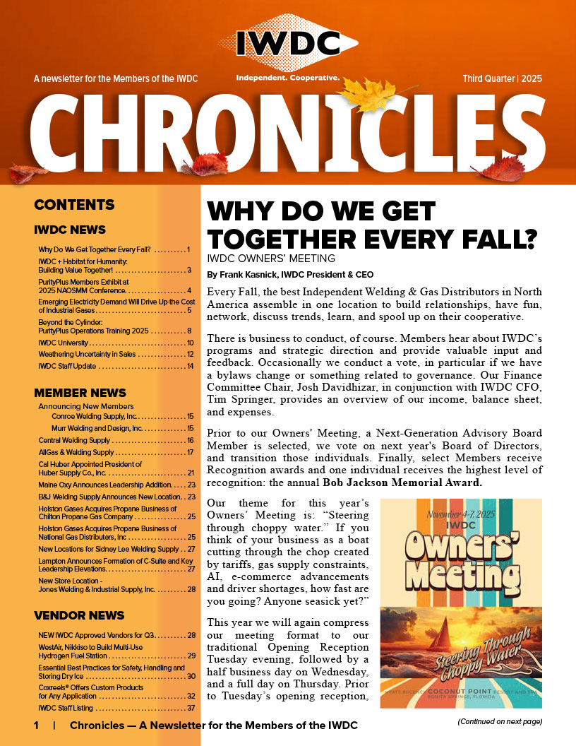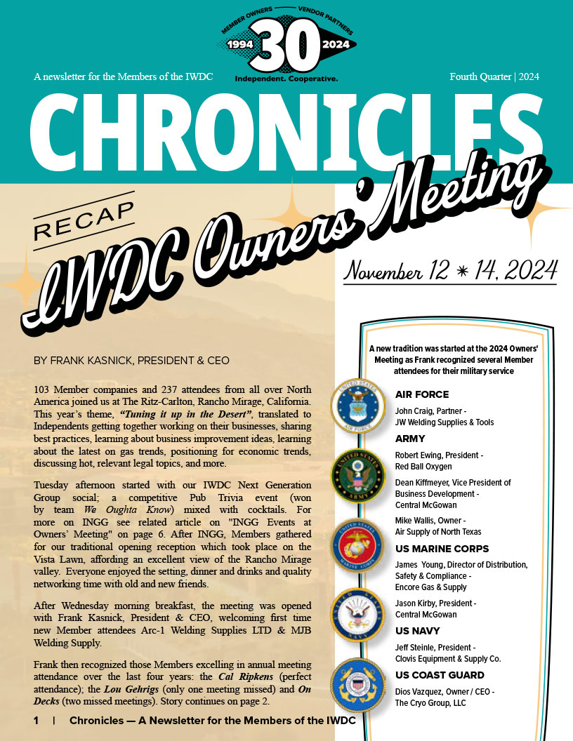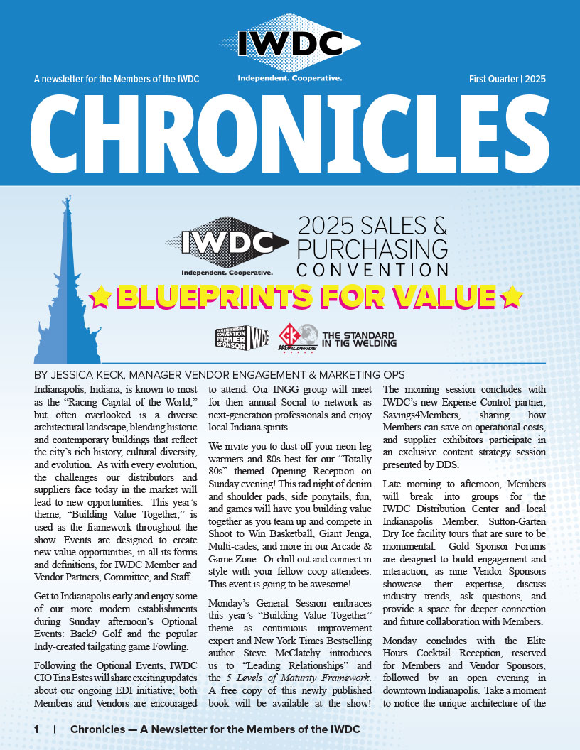 We’re a cooperative that was formed in 1994 to leverage the strengths of independent welding distributor members across North America. Actually, IWDC's roots go back even further to 1948, when an association of distributors (IWDA) was founded that decades later merged with another to become the cooperative from which we grew.