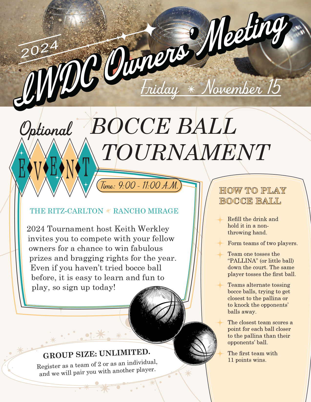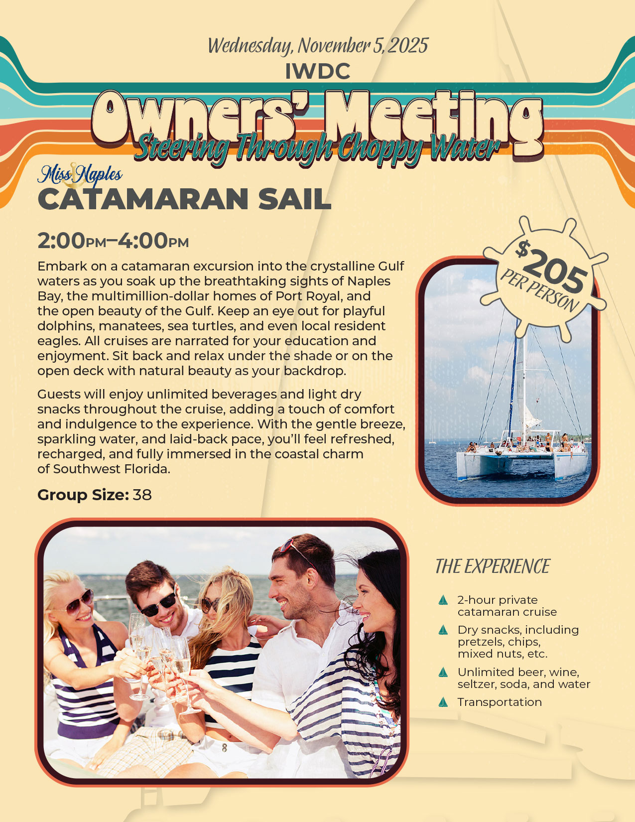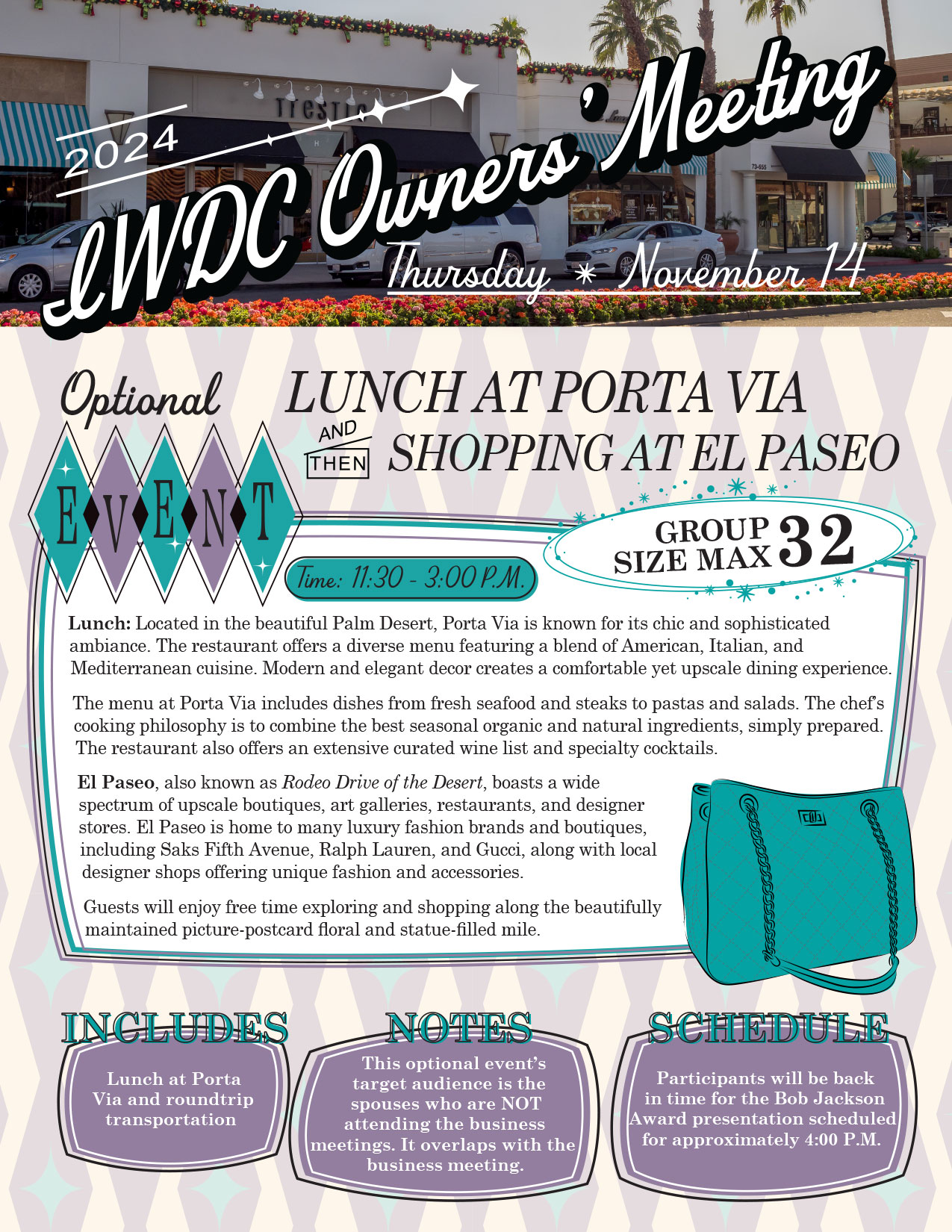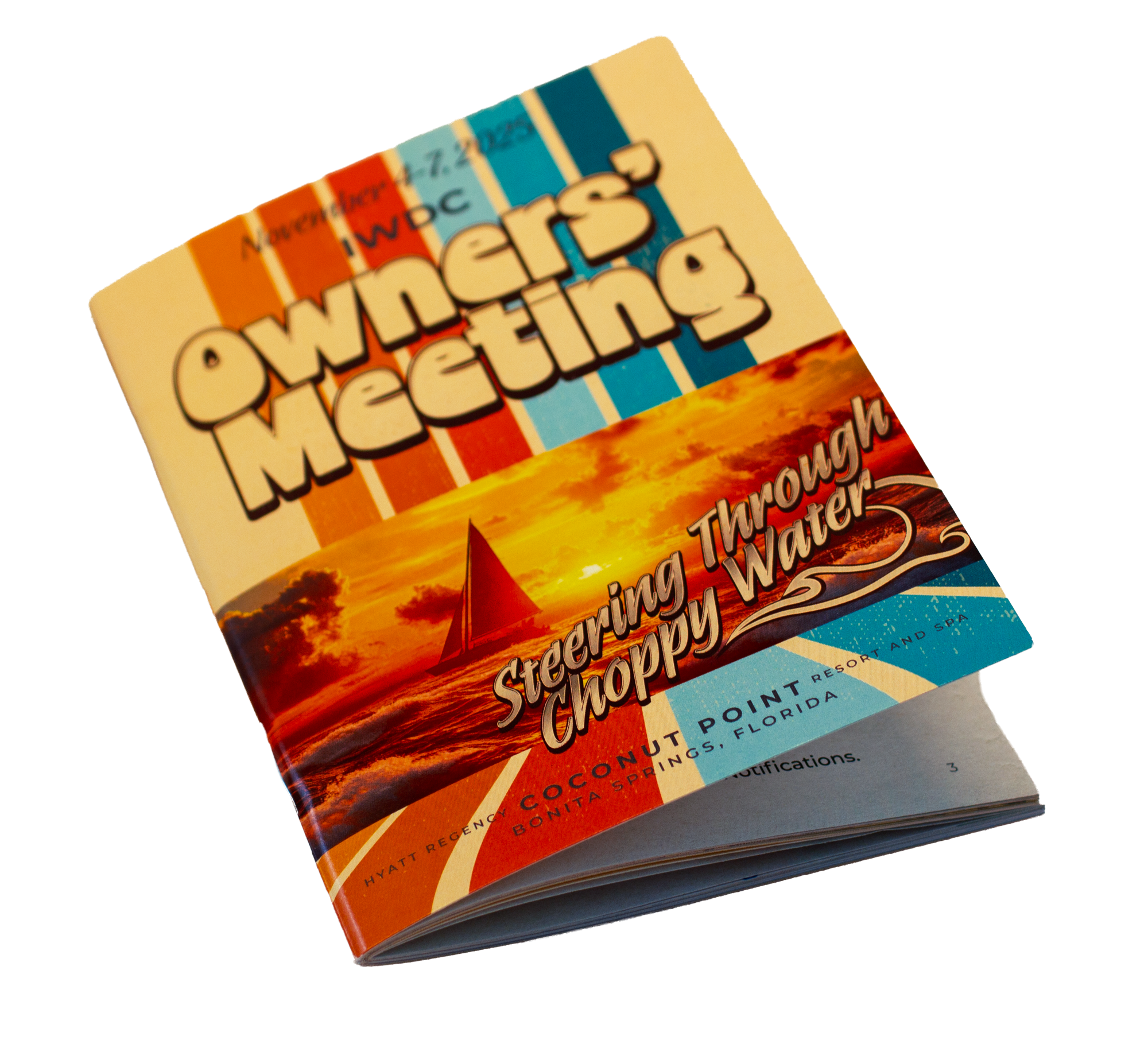 This was my first year owning the process, and I kicked things off with a Save the Date for our Owners. Since the ad dimensions matched a postcard, I decided to design it as one. With the meeting taking place near Las Vegas, I leaned into a 1940s Vegas–inspired aesthetic. I created a mood board featuring classic Vegas imagery and desert-toned colors, which became the foundation for the Save the Date postcard and the visual direction moving forward. Listening to Rhino Records’ Ultra Lounge collection definitely helped set the tone.