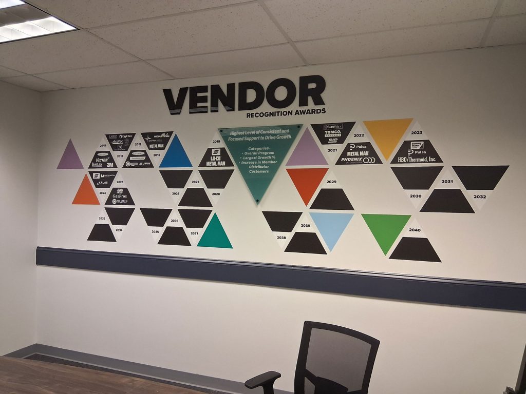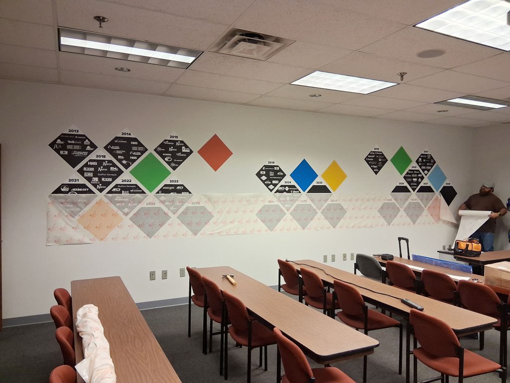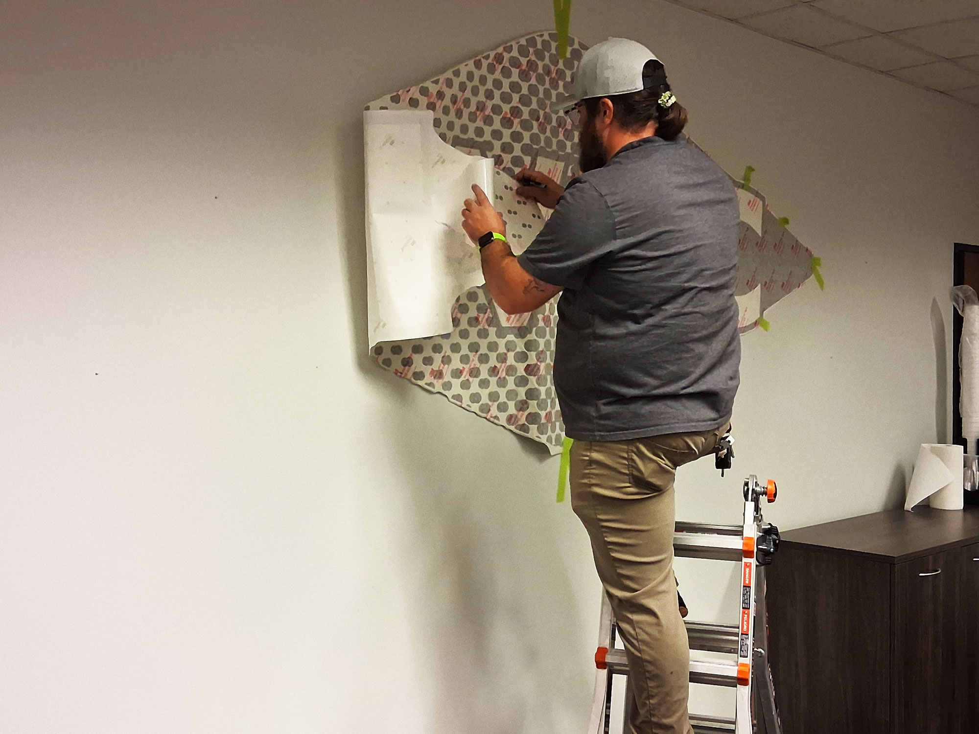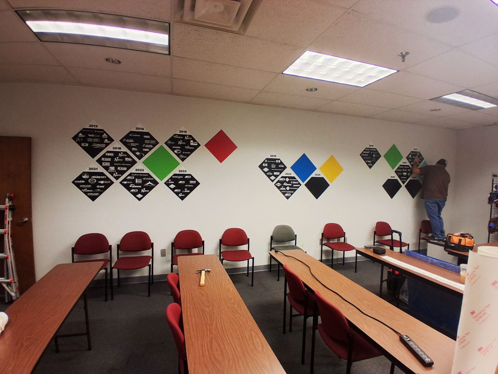Because our office is attached to a distribution warehouse, the space itself was fairly minimal. To inject some energy and personality into the environment, my Marketing Director and CEO challenged me to design custom office décor that would elevate the space.